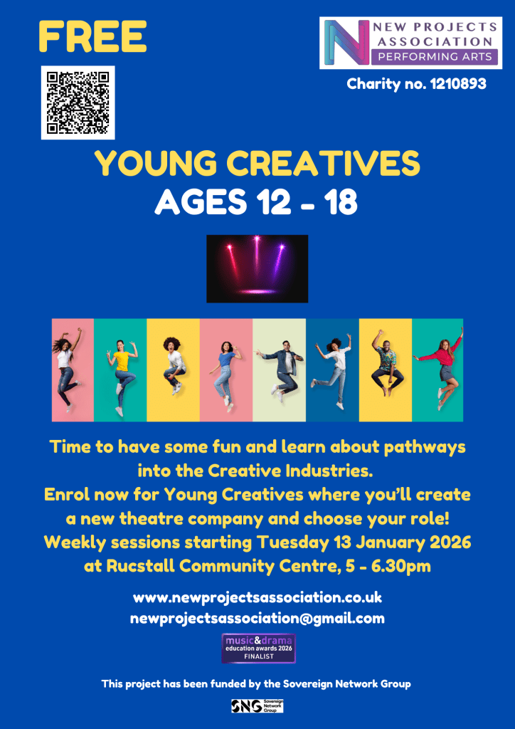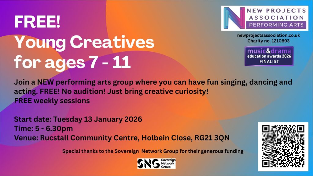 The New Projects Association is a charity providing free performing arts activity to enhance creative and cultural experiences for children and young people in the South East of England. Our members are passionate about seeking opportunities for children and young people to develop resilience, confidence, ambition and a sense of adventure that will prepare them for life.